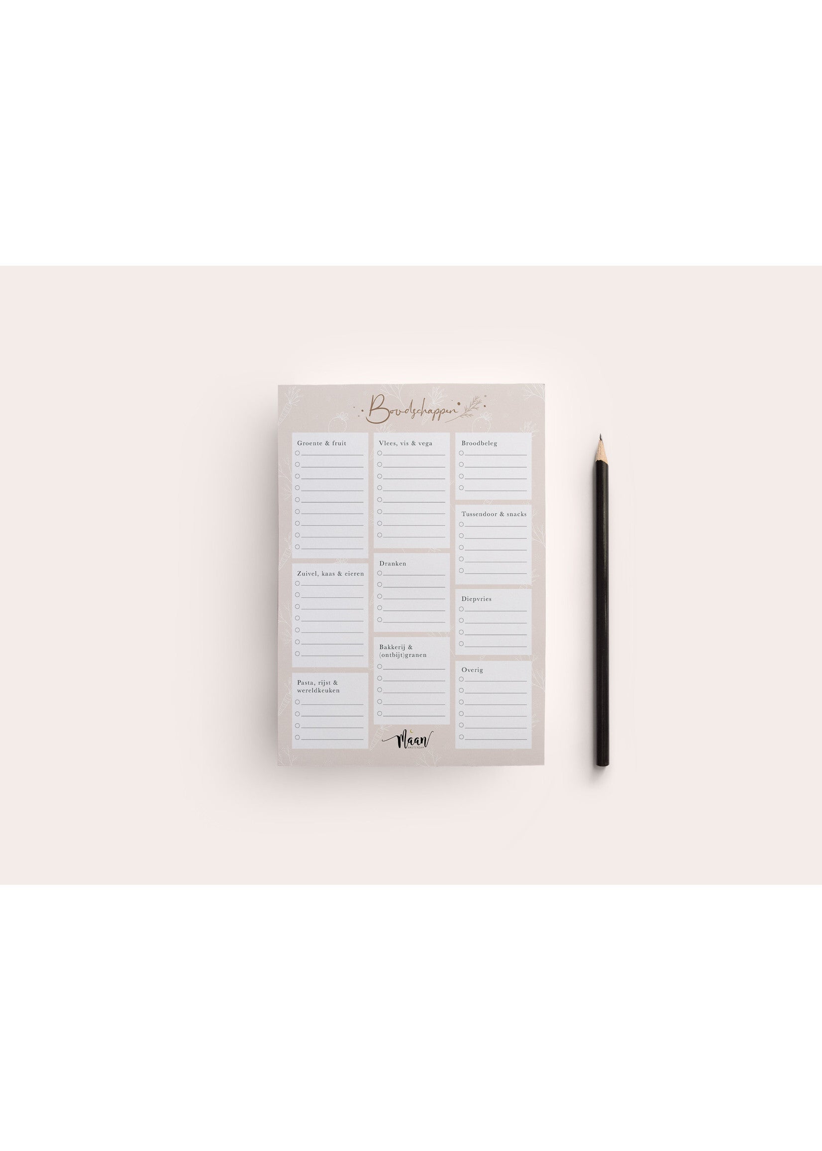 Dit boodschappenlijstje helpt je om de boodschappen op een overzichtelijke manier te noteren en zo snel alles te vinden in de supermarkt. Je kunt de boodschappen noteren per categorie.