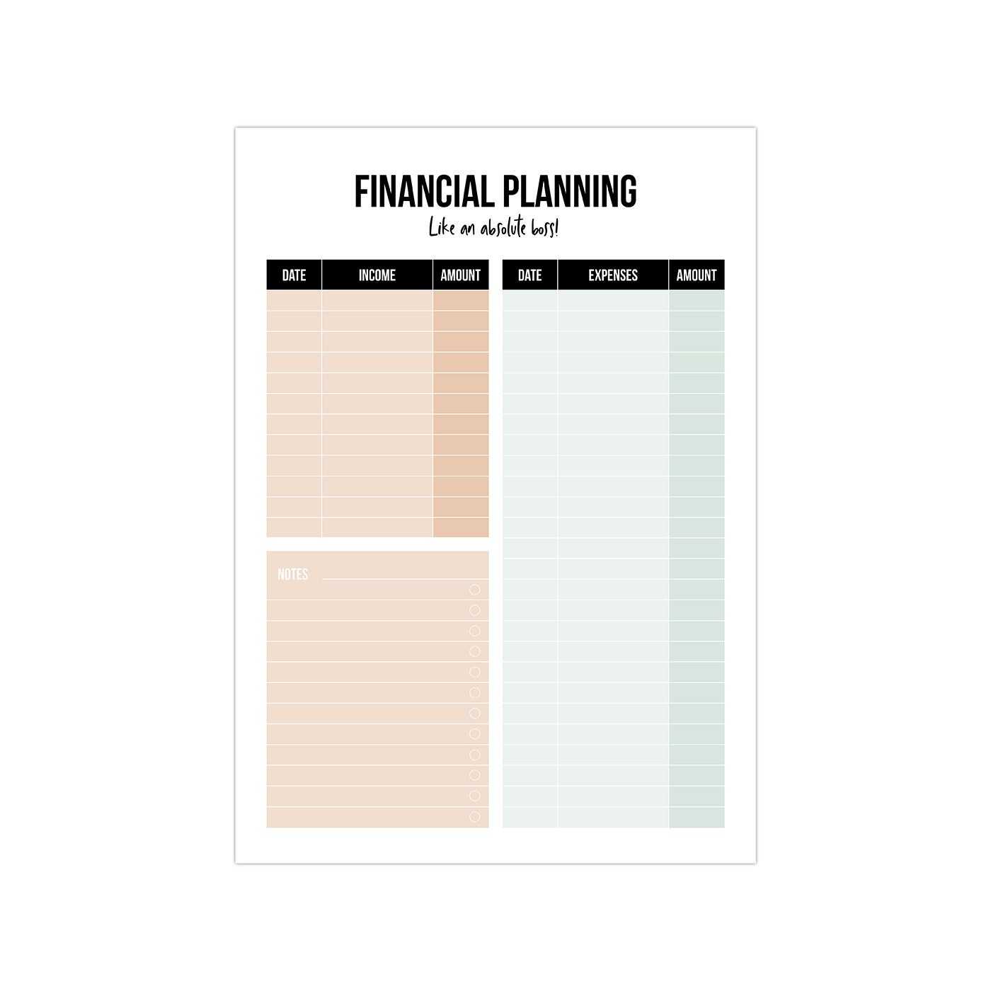 Hou al je in komsten en uitgave bij in deze te gekke financial planner. Met de super mooie pastel kleuren valt hij lekker op op je bureau en vergeet je nooit je uitgave op te schrijven. Financial planning like a boss!